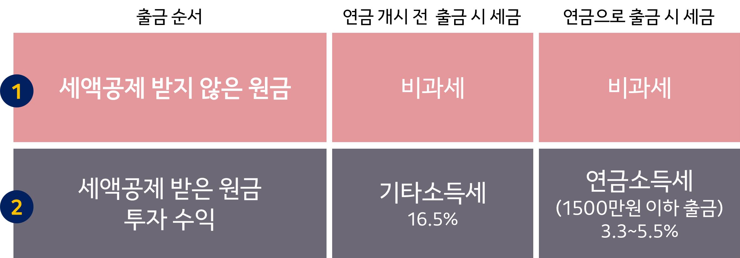 즉, 출금을 하면 세액공제를 받지 않은 원금이 비과세로 먼저 빠지게 되는 것이죠.